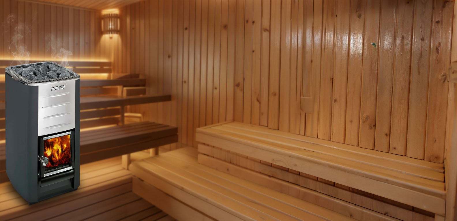 The Harvia M3 is a classically designed wood-burning heater finished in an elegant graphite black with a stainless steel air-flow spoiler. Designed specifically for smaller spaces (up to 459 cubic feet), it focuses on rapid heating and efficient air circulation to provide a soft, consistent steam.